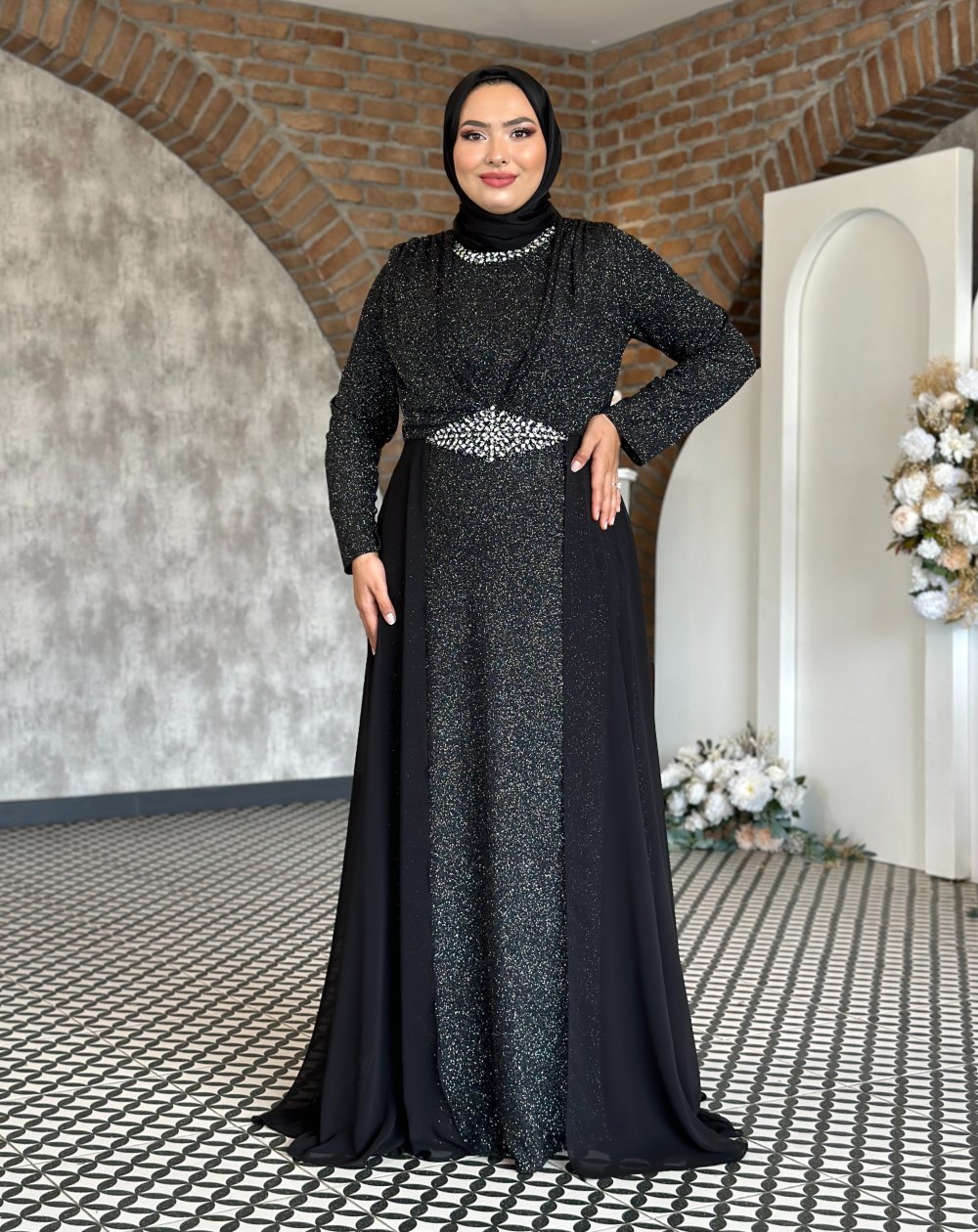 Kumaş: Kendi kumaşından Simli Şifon detayları mevcuttur.