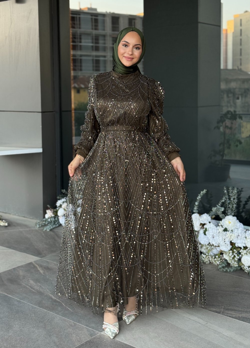 Asena Tesettür Abiye koyu haki