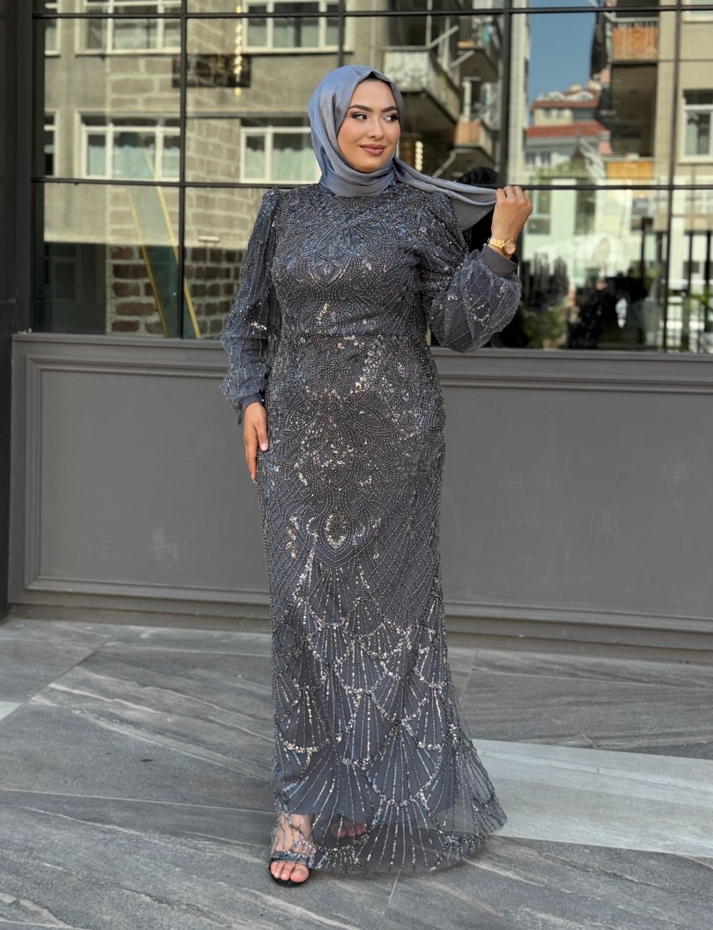 Aslıhan Tesettür Abiye Gri