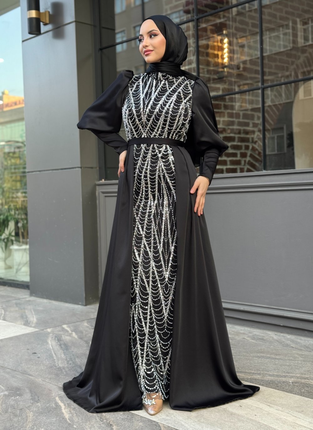 Asude Tesettür Abiye Siyah