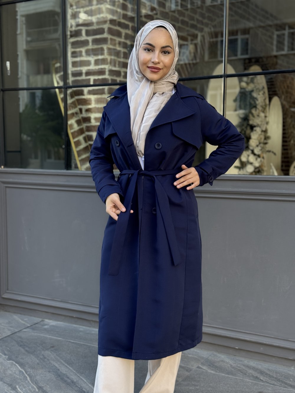 Aylin Rüzgarlıklı Trençkot Lacivert