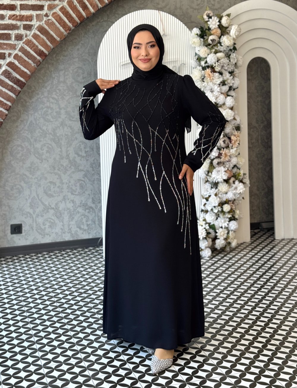 Ürün açıklama; Arkadan fermuarlıdır. Ön kısmında saçaklı boncuk detayları mevcuttur. Astarsızdır. Bisiklet yakadır.