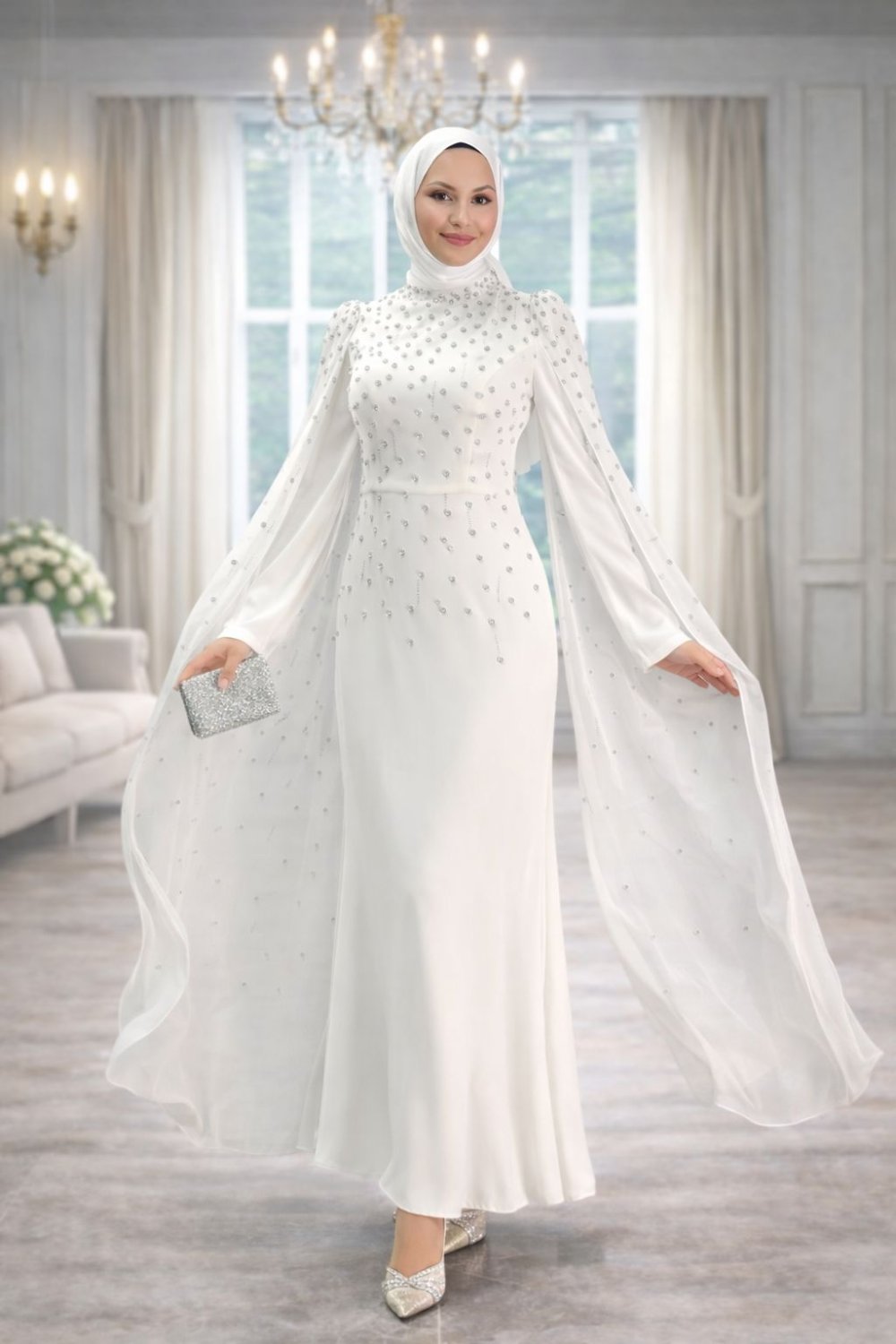 Defne Tesettür Abiye Beyaz