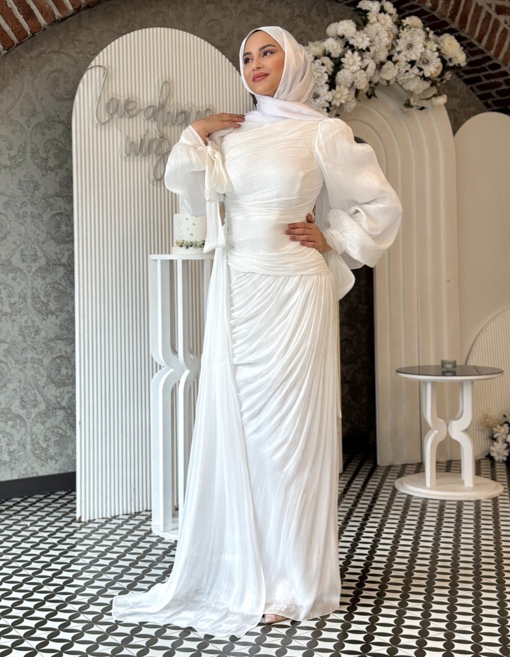 Derin tesettür abiye Beyaz