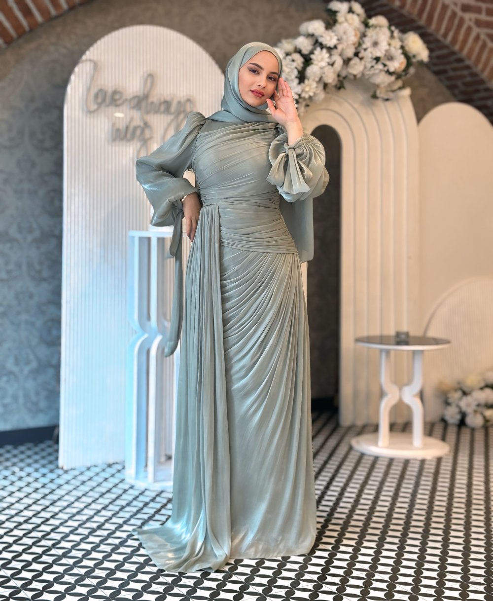 Derin tesettür abiye Mint Yeşili