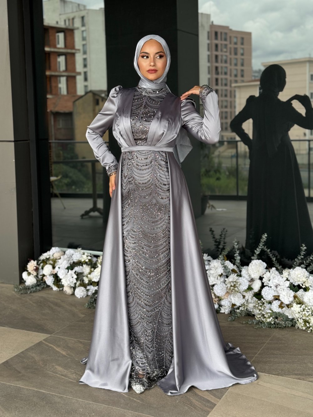 Dilşah Tesettür Abiye Gri
