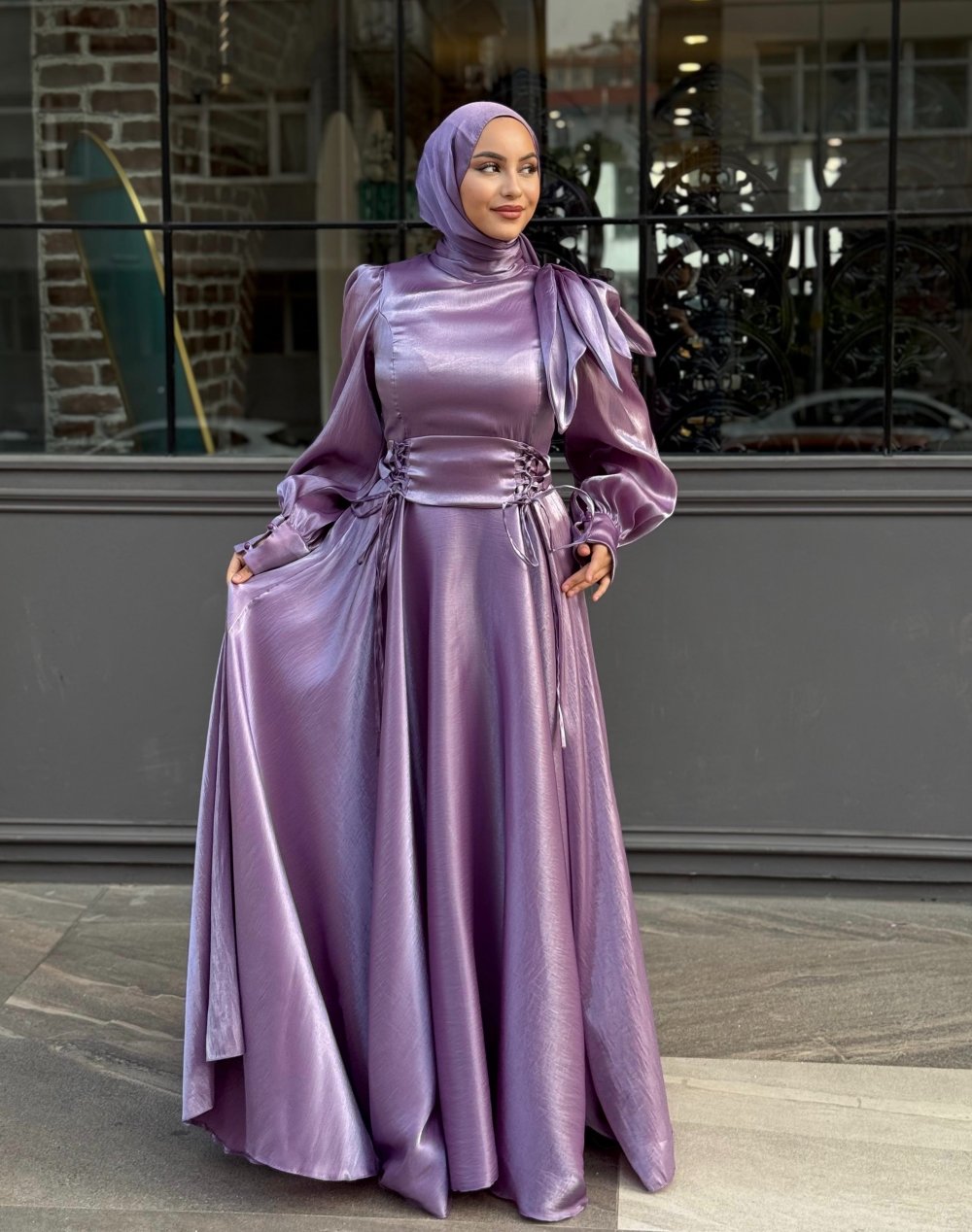 Emel Tesettür Abiye Lila