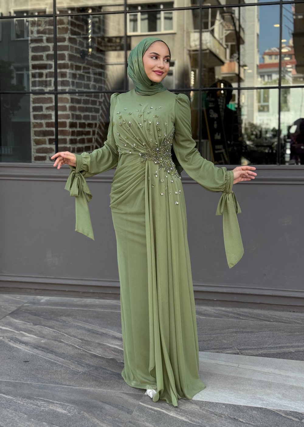 Firuze Tesettür Abiye Yeşil