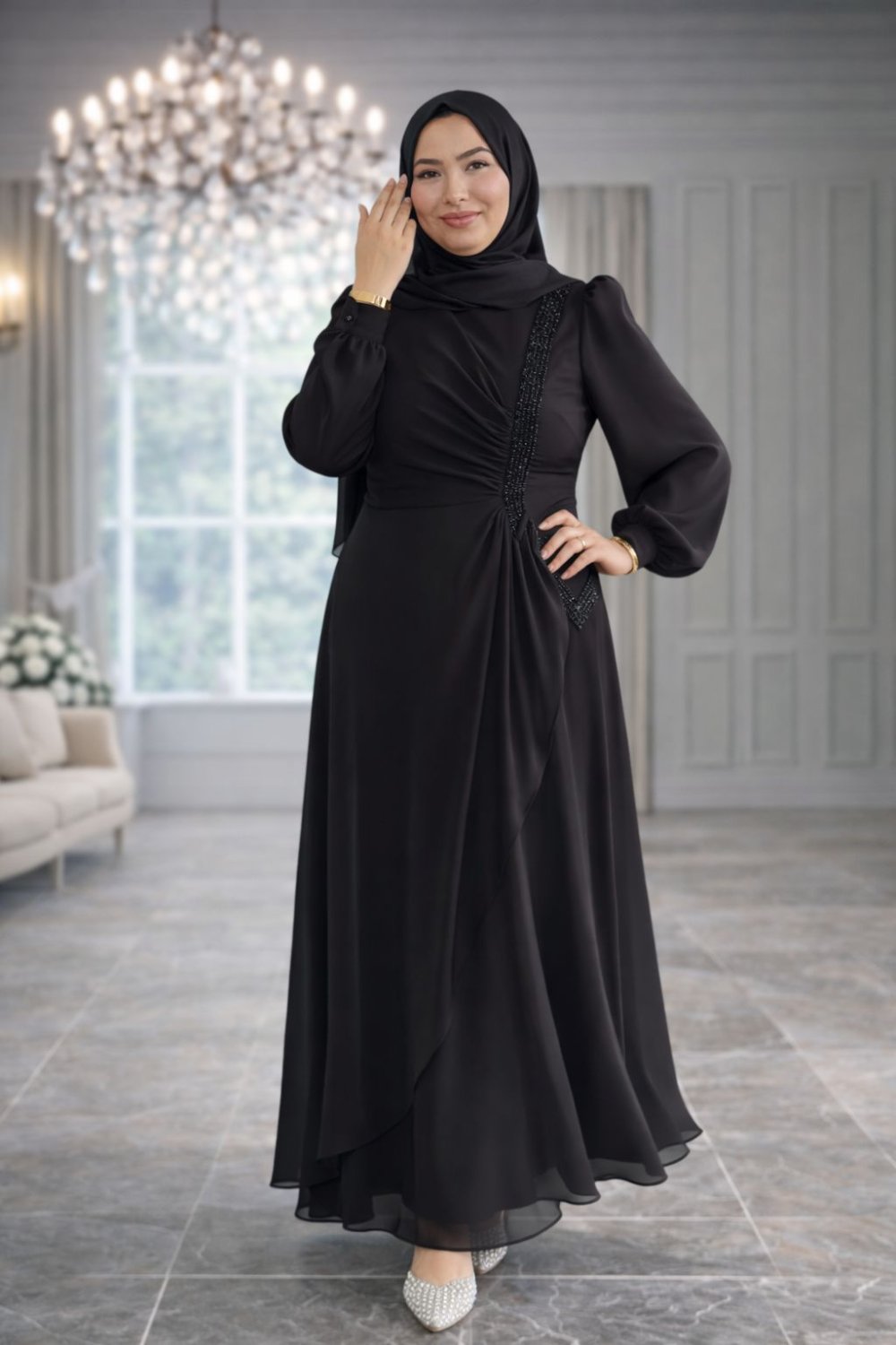 Gamze Tesettür Abiye Siyah
