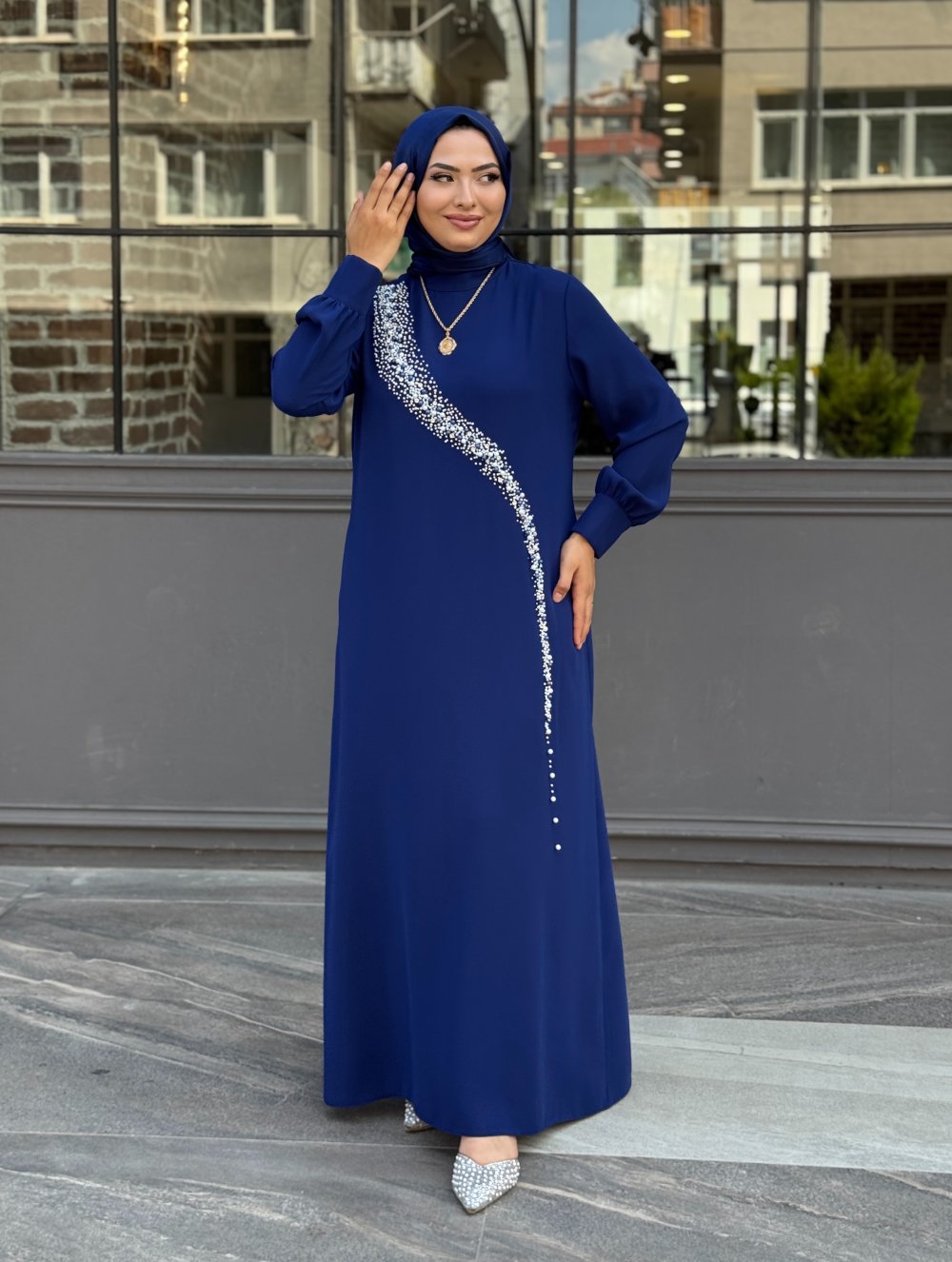 Hazan Tesettür Abiye Açık Lacivert