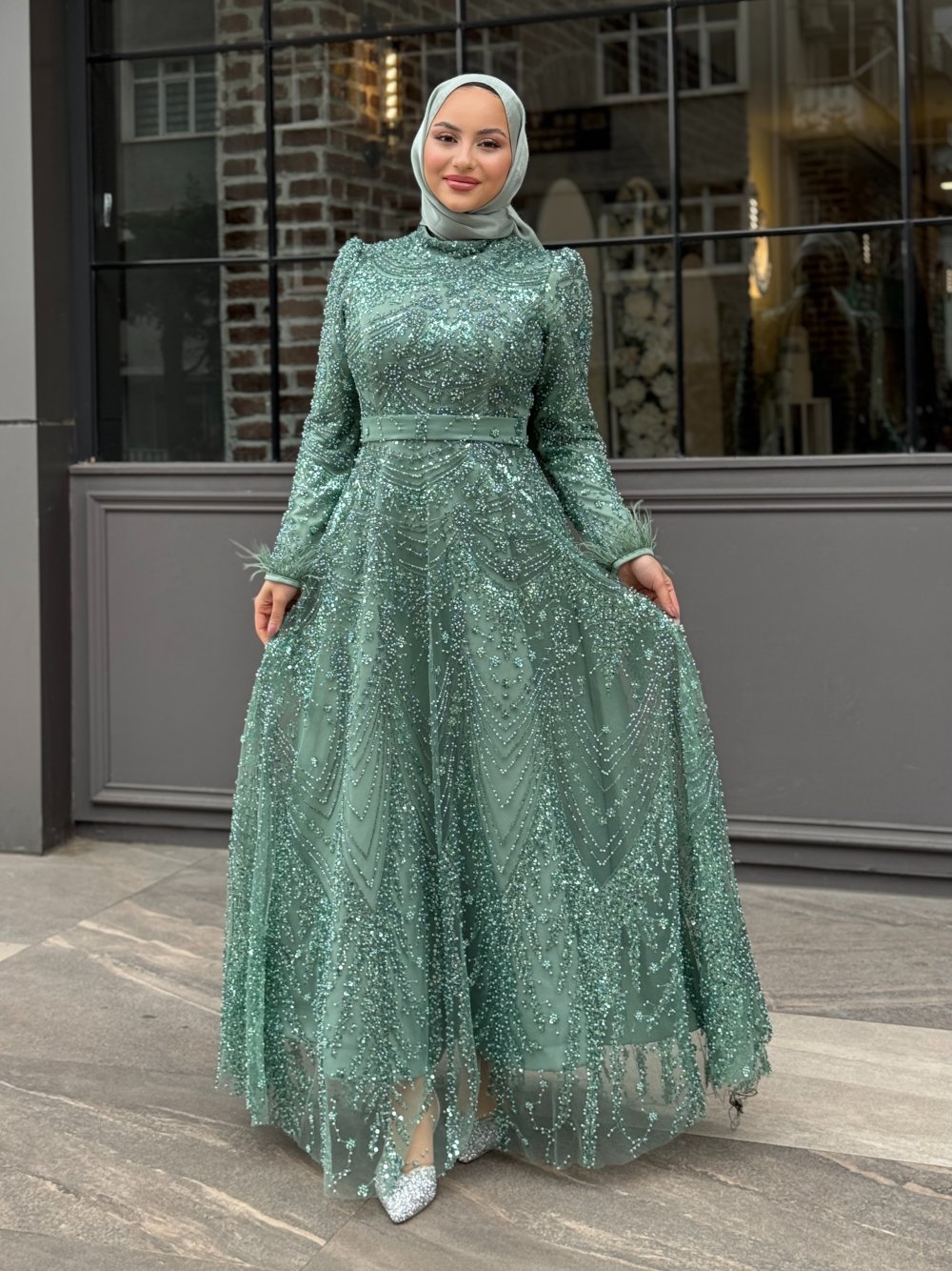 Hürrem Tesettür Abiye Mint Yeşili