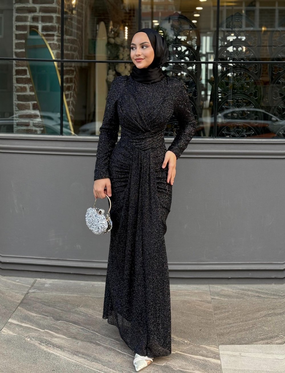 • Kumaş: payet Işıltılı ve dökümlü yapıda