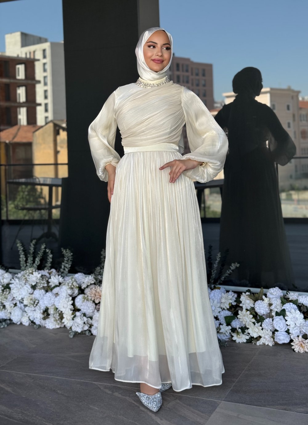 İlknur Tesettür Abiye Ekru