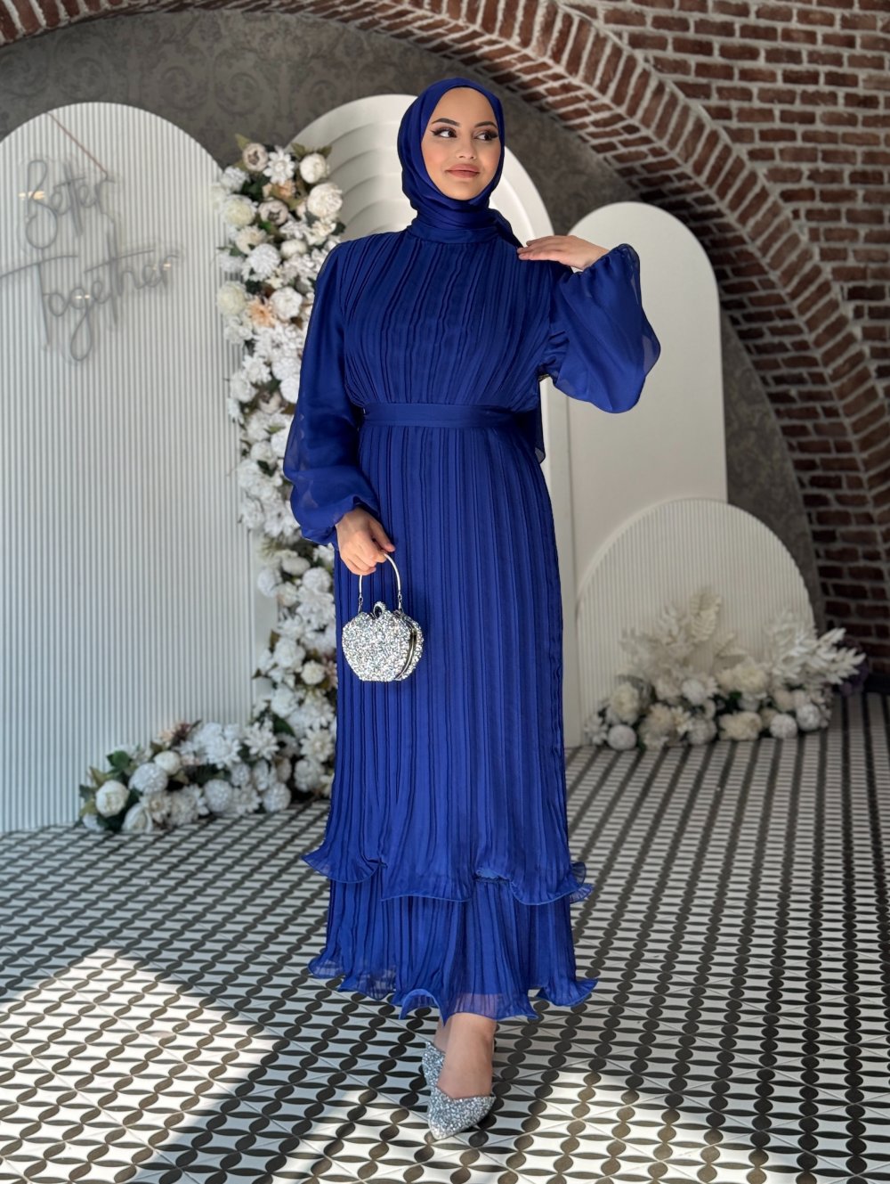 Zarafetin ve rahatlığın birleştiği bu piliseli elbise, özel günlerinizde şıklığınızla göz kamaştırmanız için tasarlandı.