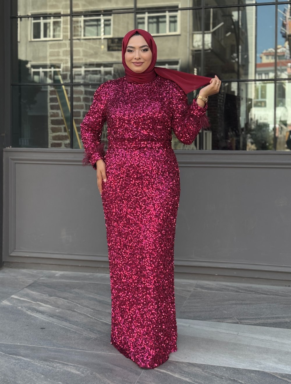 MELİKE Payetli Kalem Abiye Fuşya