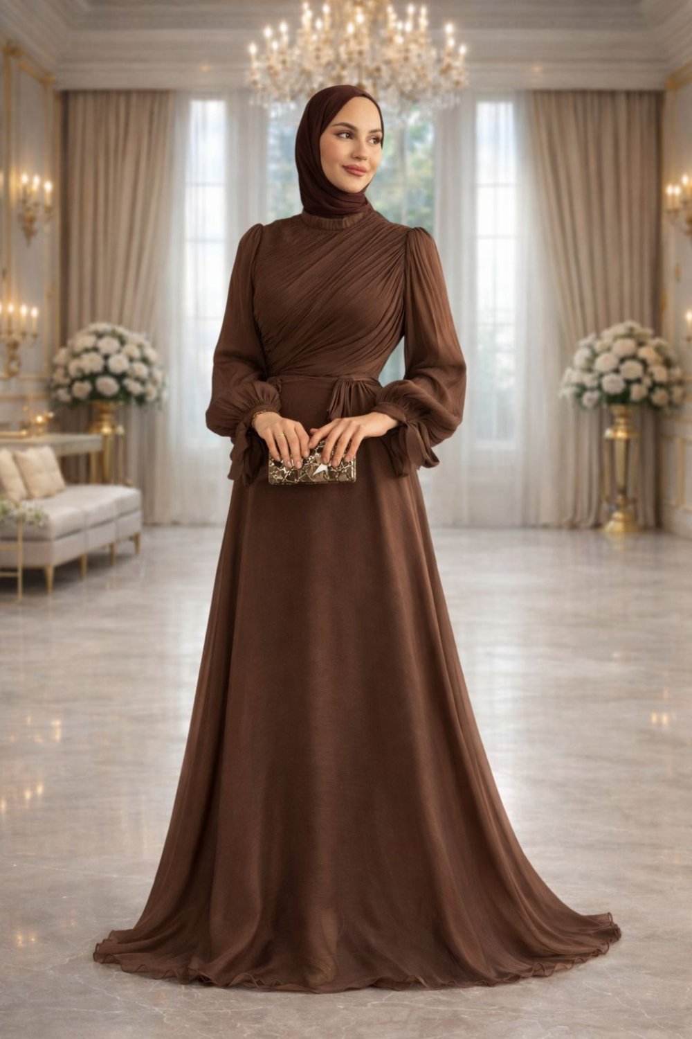 Meltem Tesettür Abiye Kahverengi
