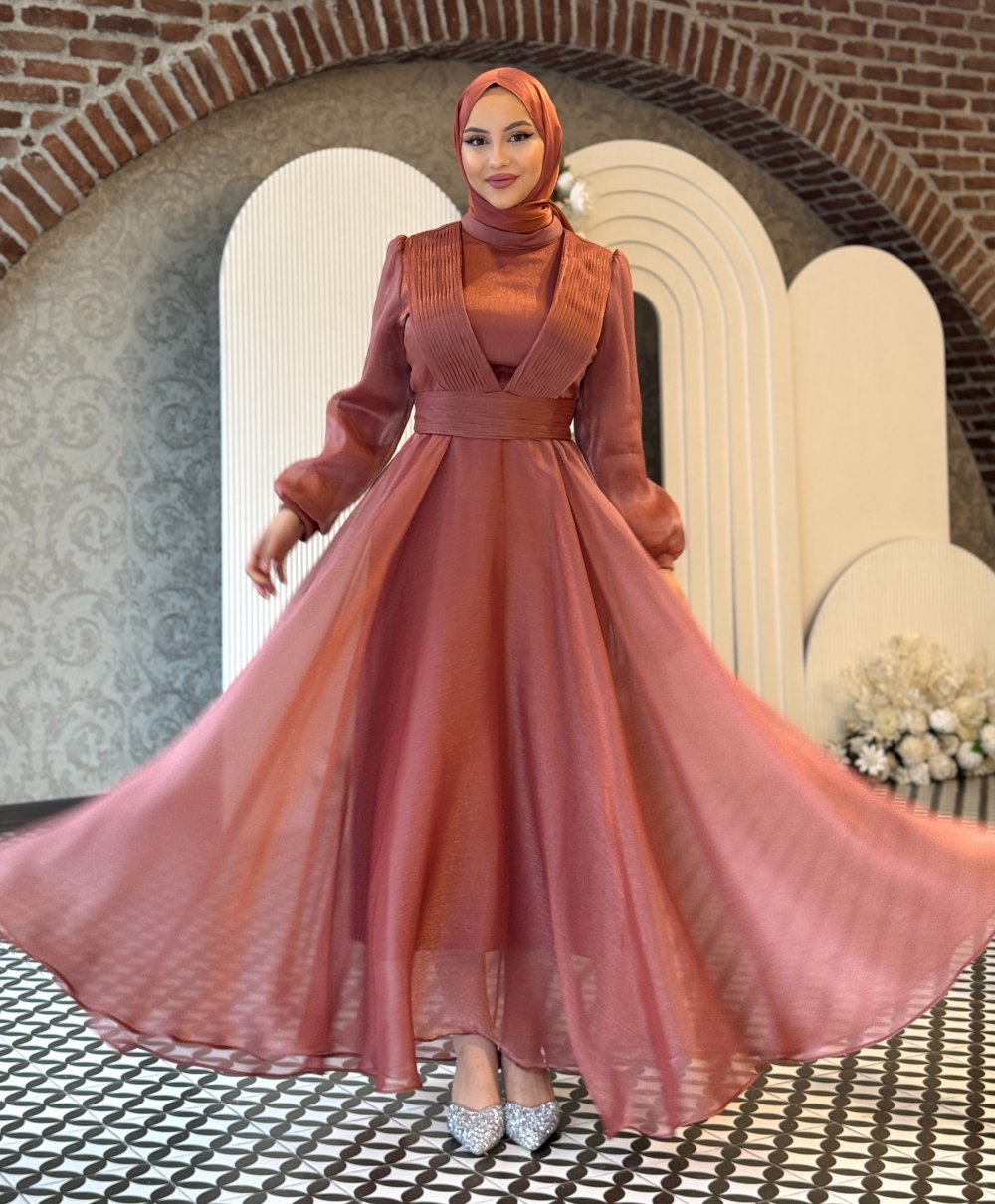 Mercan abiye tesettür Kiremit