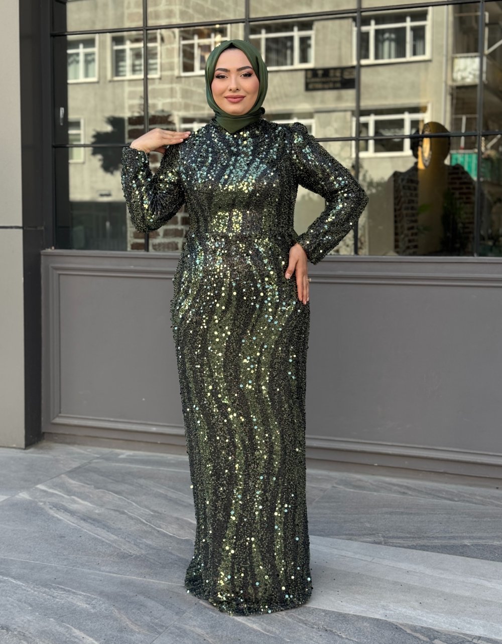 Mevsim Tesettür Abiye Haki
