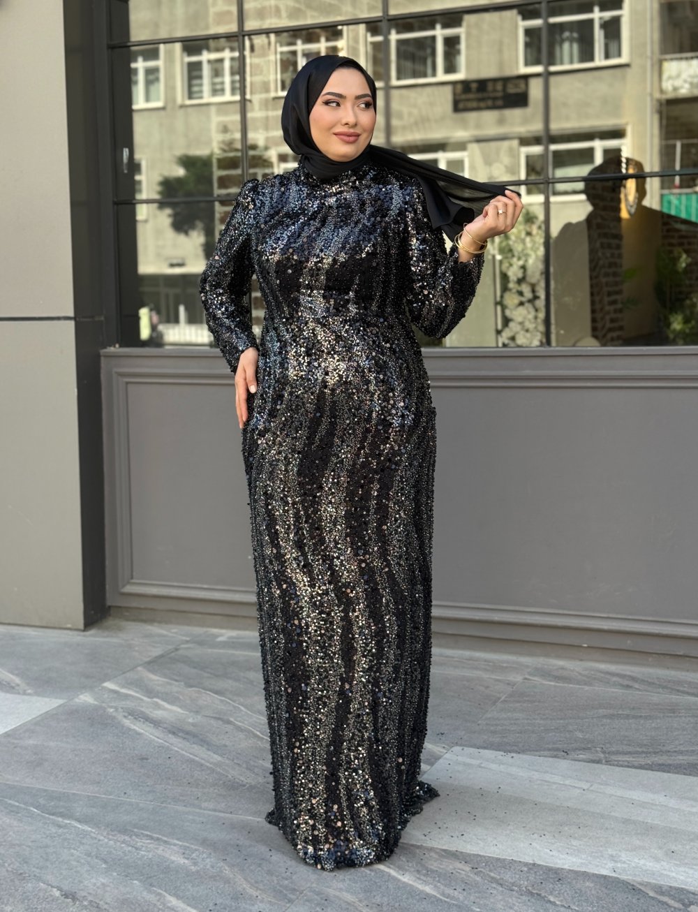 Mevsim Tesettür Abiye Siyah
