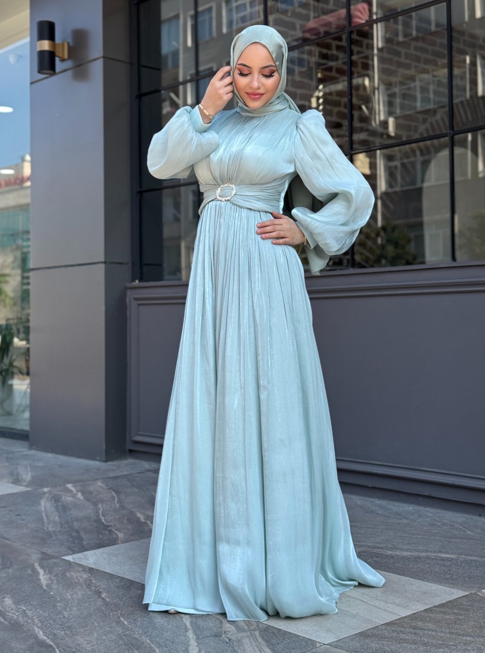 Nedime tesettur abiye Mint Yeşili