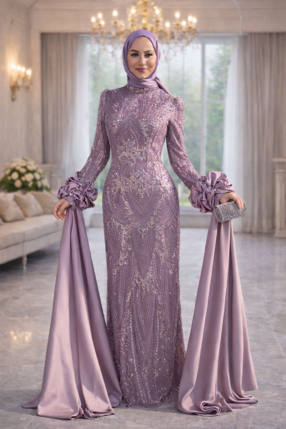 Nesibe Tesettür Abiye Lila