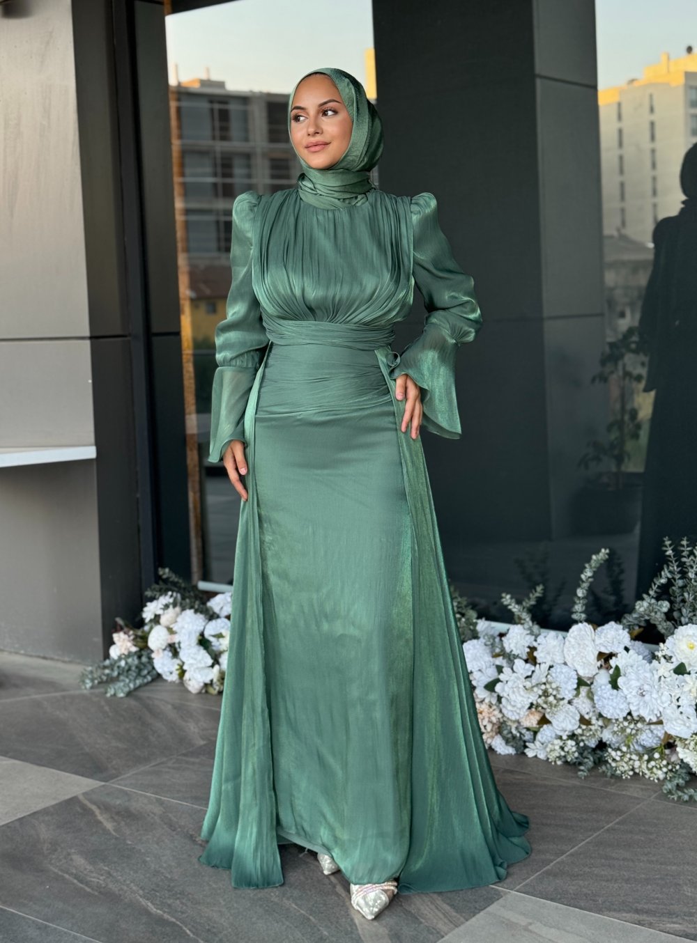 Öykü Tesettür Abiye Çağla yeşili