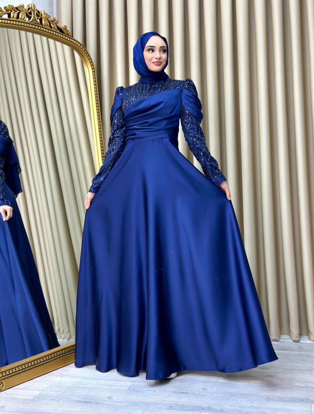 Ürün açıklaması; Arkası fermuarlıdır..kolları ve Göğüs  kısmı pul işleme detaylıdır. Kolları ve göğüs kısmı drapelidir.Ürün tam kalıp kendi bedeninizi tercih edebilirsiniz.