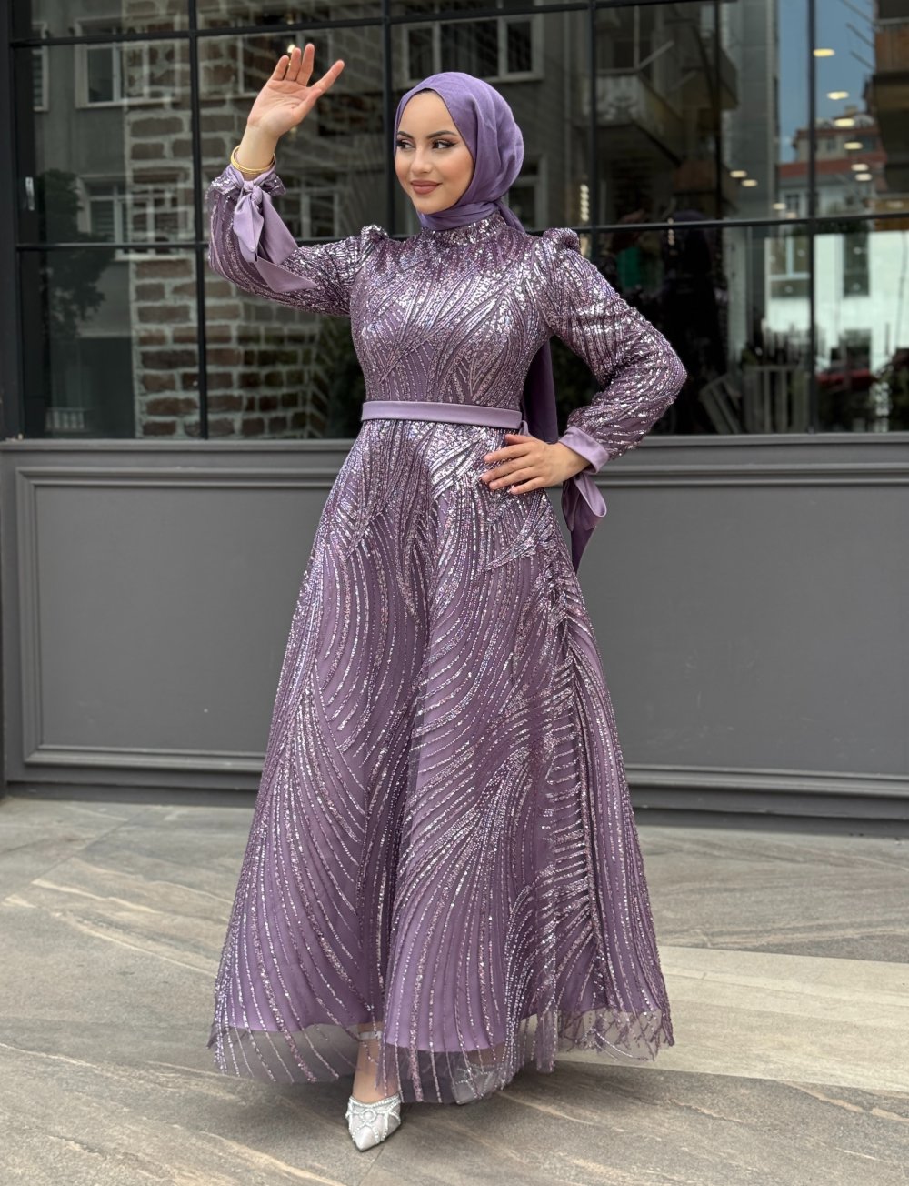 Parıltısıyla büyüleyen bu özel tasarım abiye, şıklığın en iddialı halini yansıtıyor.