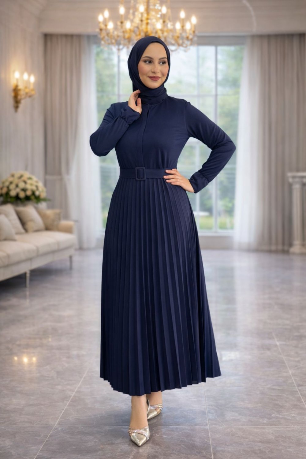 Pileli etek formu ve kemer detayı ile hem klasik hem modern bir duruş sunar. Mira krep kumaşı sayesinde dökümlü, hafif ve konforlu bir kullanım sağlar. Gün boyu rahatlık isteyenler için ideal.