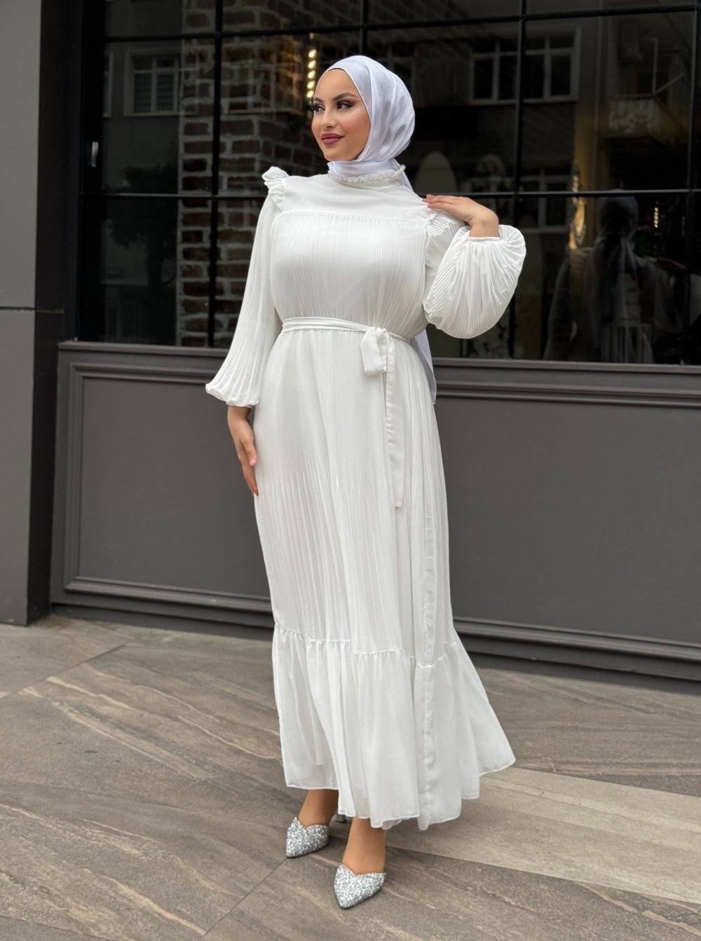 ŞEYDA ŞİFON PİLİSELİ ELBİSE Ekru