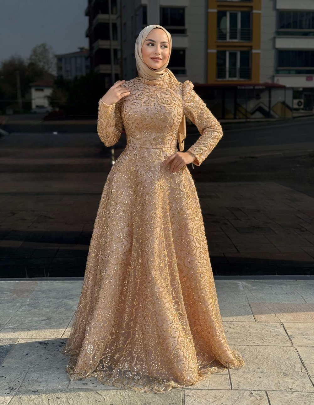 Simge Tesettür Abiye Gold