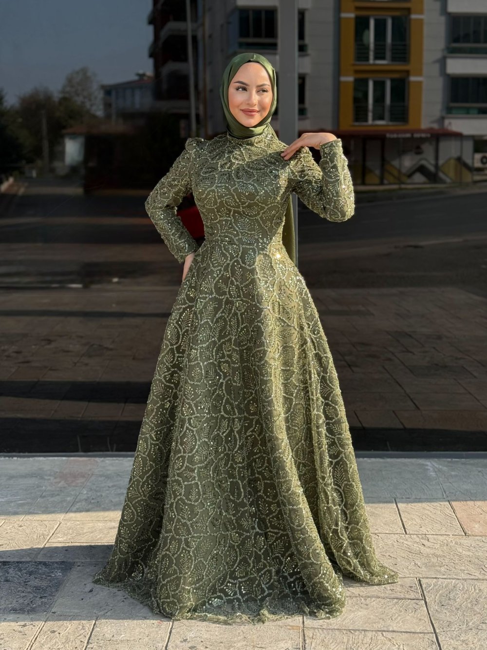 Simge Tesettür Abiye Haki