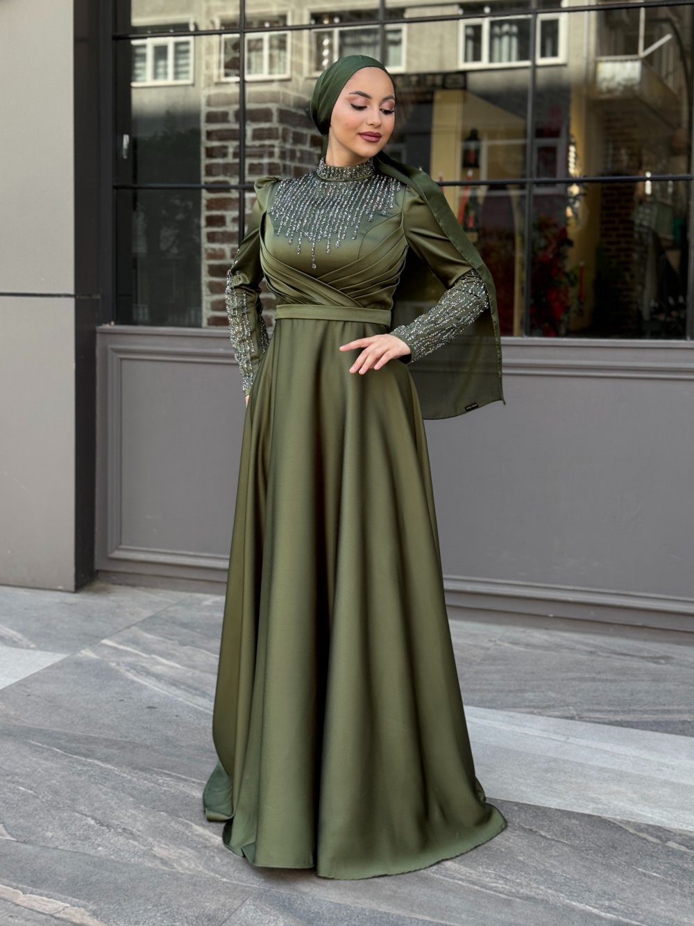 Kolları ve göğüs ve boyun kısmı taş detaylıdır