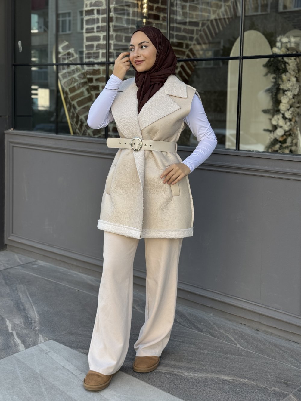Ürün Türü: Kürk detaylı kuşaklı yelek