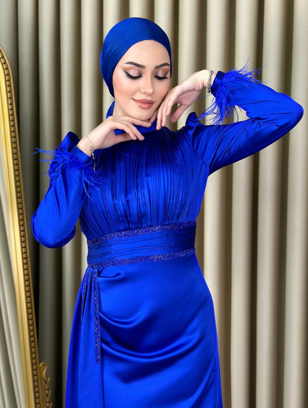 Tülay Tesettür Abiye Saks Mavisi
