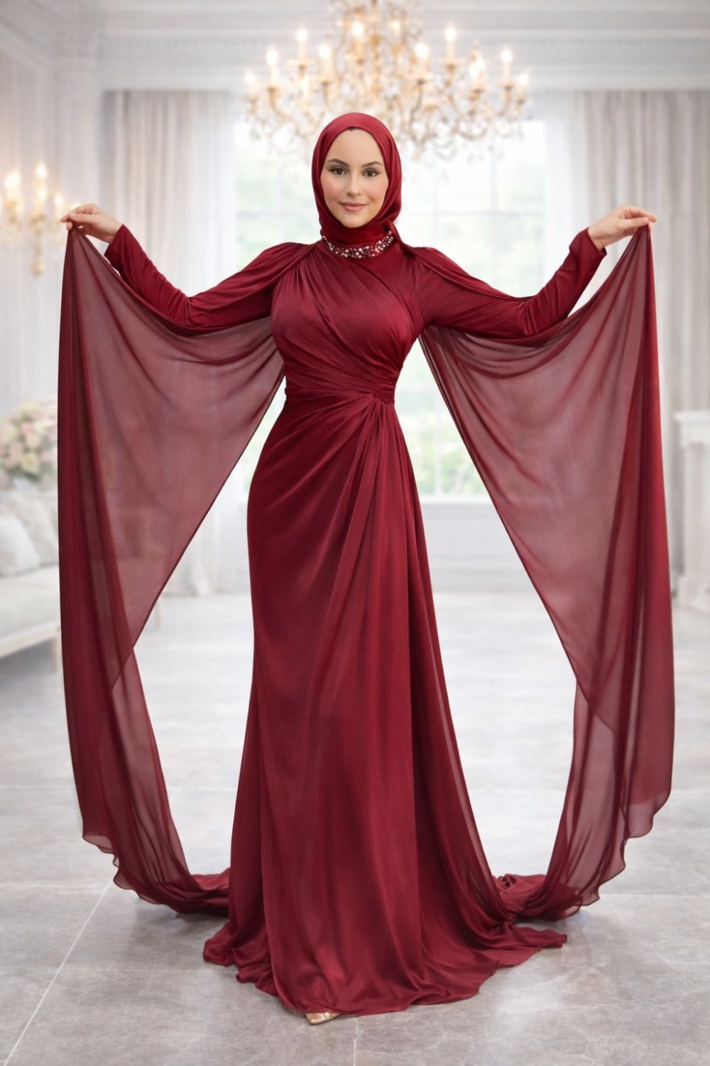 Yakut Tesettür Abiye Bordo