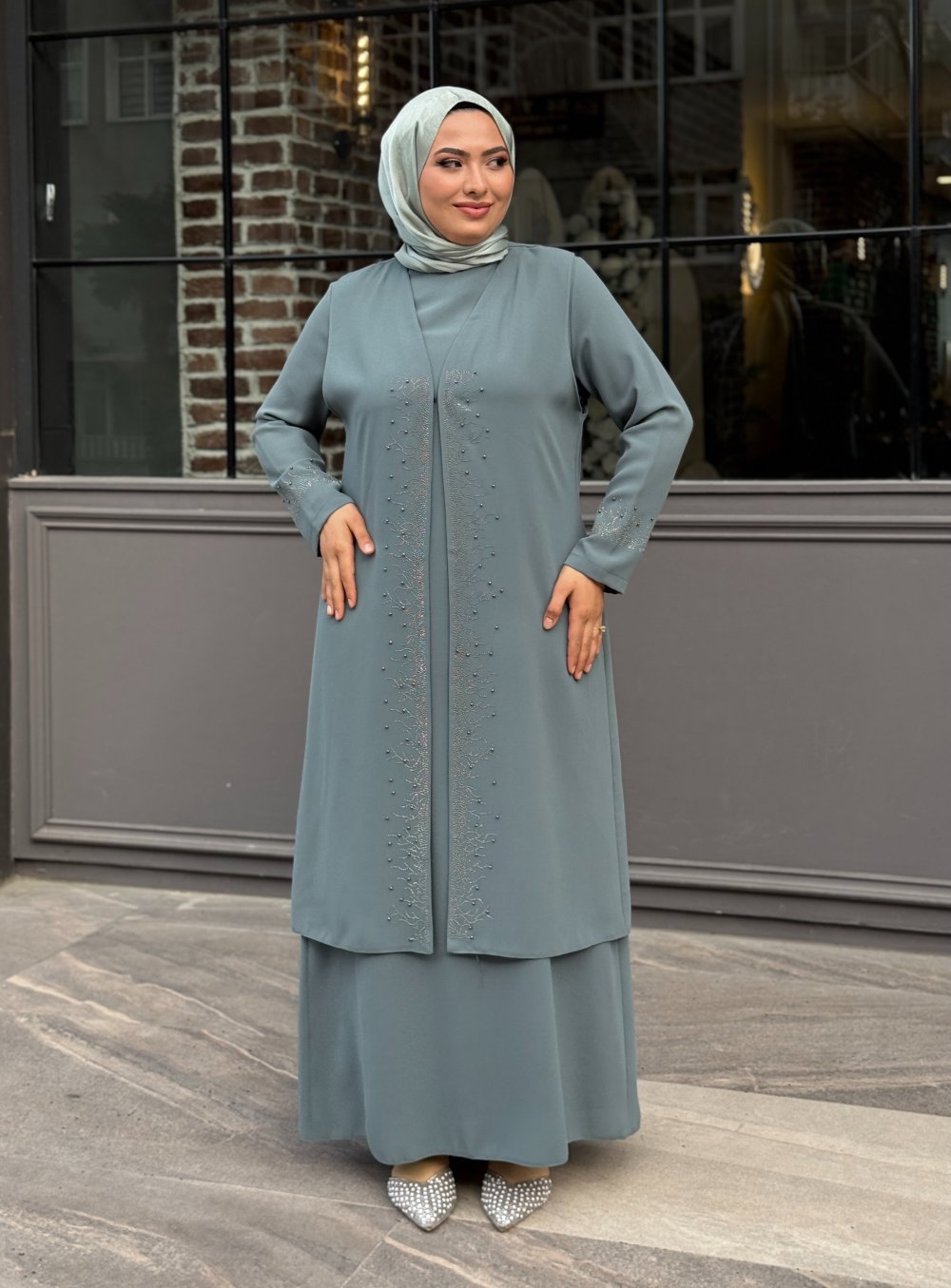 Zarife Tesettür Abiye Mint Yeşili
